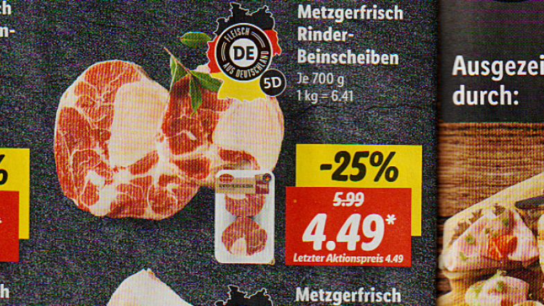 Eine weitere Klage gegen Lidl haben wir angestrengt, weil für ein Lebensmittel mit einem aktuellen Sonderpreis geworben wurde unter Gegenüberstellung eines gestrichenen Preises und der Ankündigung von 25 Prozent Preisreduzierung – ohne Hinweis auf den günstigsten Preis der letzten 30 Tage. Das Verfahren wurde durch einen Vergleich am 17. Mai 2023 beendet.