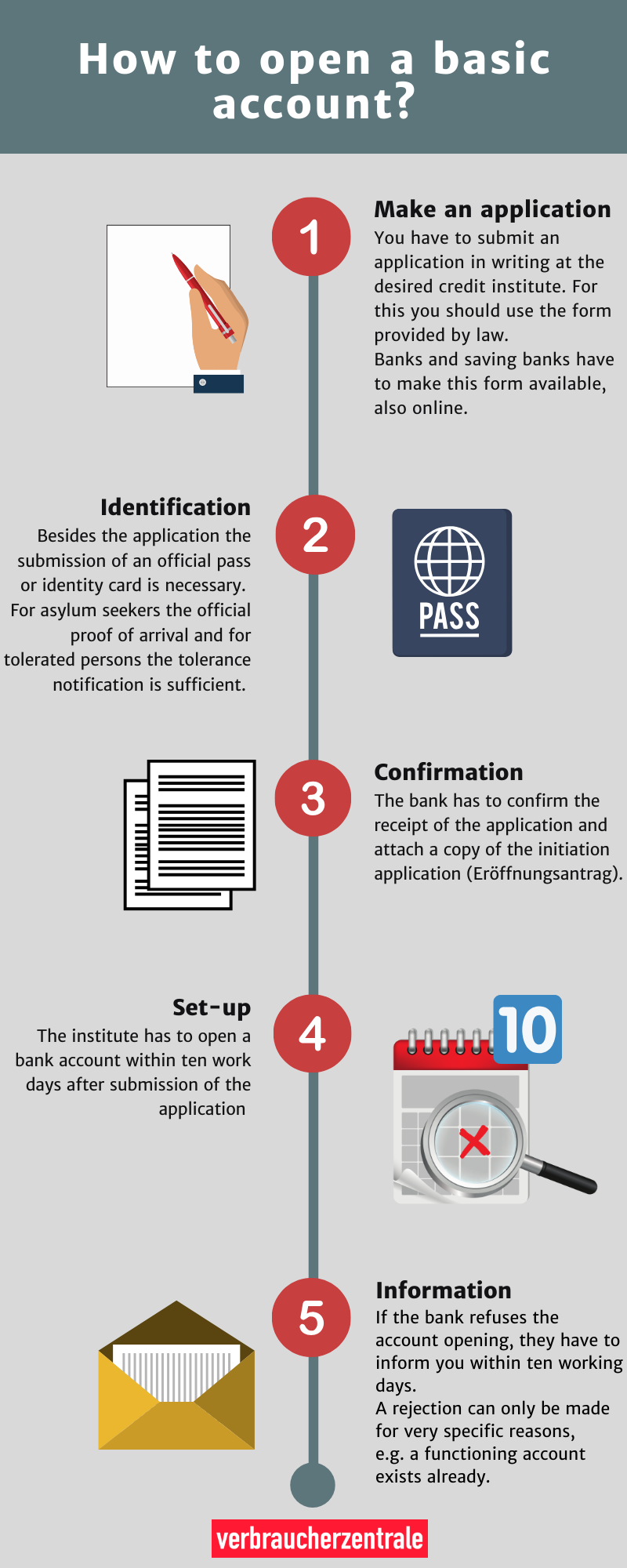 Every consumer has a claim to an account used for payments with basic functions (basic account), including homeless people, asylum seekers and people who are tolerated.