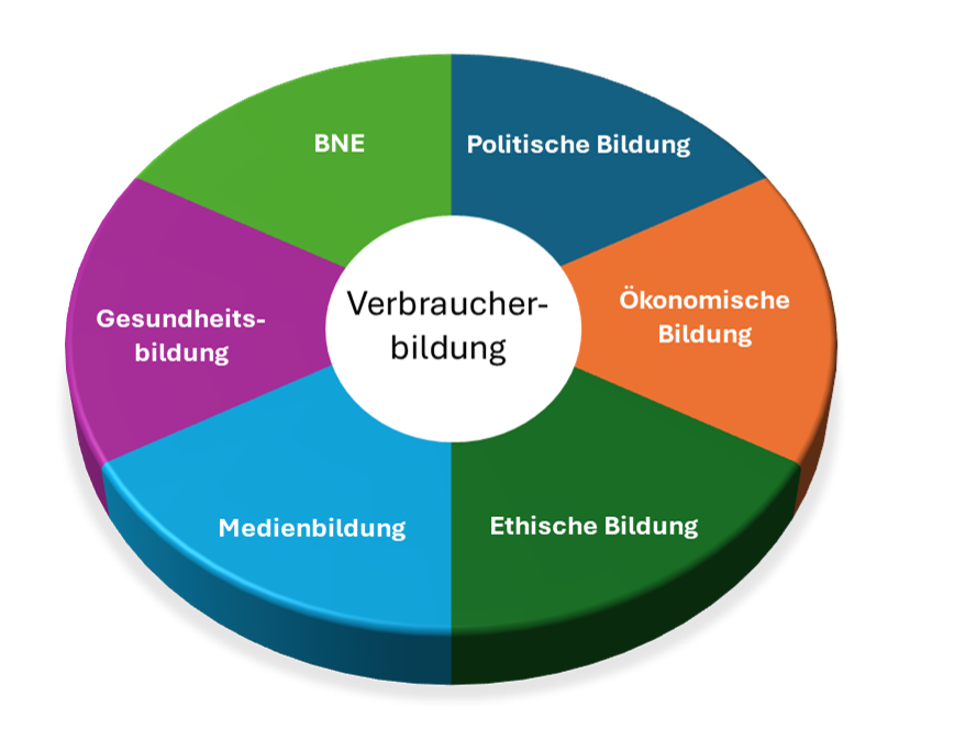 Thematisch besitzt schulische Verbraucherbildung ganz selbstverständlich Schnittstellen zu anderen Bereichen der schulischen Bildung  (z.B. Medienbildung, politische Bildung). Sie wird aber von diesen nicht vollständig abgedeckt, noch deckt sie diese vollständig ab. Diese Schnittstellen zwischen Verbraucherbildung und den anderen schulischen Bildungsbereichen veranschaulicht folgende Abbildung 1.